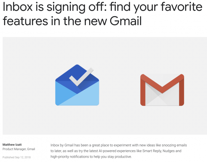 Hi Victor. Yes, Inbox will shut down March 2019. Don’t worry, Gmail will not close. Google will force you to move back from Inbox to Gmail. The problem is, that Gmail feels really old and rusty compared to Inbox. Gmail does not yet support Bundles…