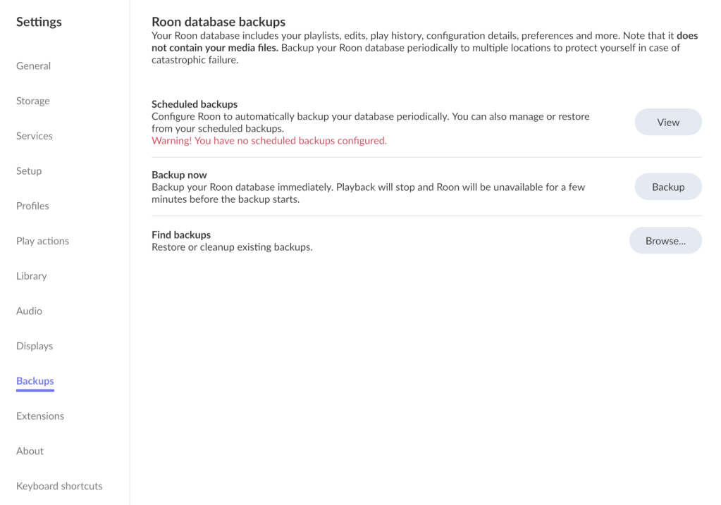 So in this case: Backup! And none of this is rocket science. Roon recommends using the integrated backup solution. Isn’t that perfect?