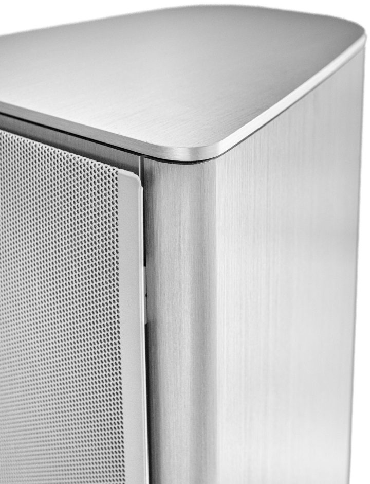 A Swiss manufacturer that happens to be located in my immediate neighborhood. Handmade and manufactured with the utmost precision, these speakers know how to impress visually. The cabinet is made of one piece of aluminum extruded under 40 tons of pressure. It creates a particularly noble and high-quality appearance. With their elegant and timeless appearance, Piega speakers become absolute eye-catchers in any room. And to my taste, I own the most beautiful model of all Piega loudspeakers. I have a version in a rare trapezoid shape that was only built this way for a very short time. The cost in terms of failing stamping tools that had to be constantly replaced was just too high for this type of construction. What I love is that the top plate and the speaker grill detach from the chassis and seem to float.