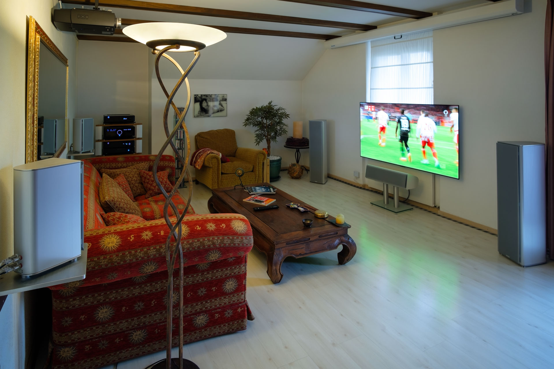 I have been very lucky to live in a house that is over a hundred years old. No concrete, but lots of clay bricks and wood. The thermal insulation does not correspond to today’s standards, but acoustically, I can never move out of here. My living room is not even 30 square meters (320 square foot), however it is quite cozy. And I wanted to preserve this at all costs. Therefore, I cannot have huge speakers, that is not even possible from the size of the room. In the end it should just be reasonable. I have now combined both worlds (Home Theater & HiFi Stereo) in one room, without compromising on the coziness and living comfort.