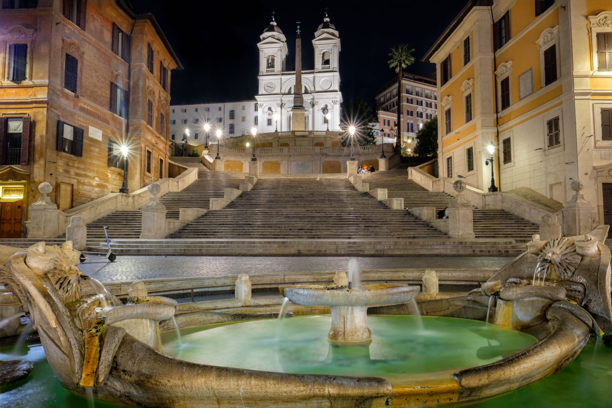 The journey continued southeast along Villa Medici, leading us to the iconic Spanish Steps. This artistic odyssey seamlessly blended urban sophistication with the tranquility of the park, creating a symphony of sights and sounds that resonated with the diverse spirit of Rome. The steps and the square below are crowded during the day, and so dreamily lonely at night.