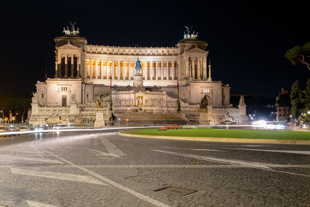 The historic bridge and castle come alive at night, adorned in gentle illuminations that highlight their architectural grandeur. Embracing the thrill of the Roman night, we zipped between landmarks on E-Scooters, leaving a whimsical trail of lights captured in a mesmerizing long exposure image.