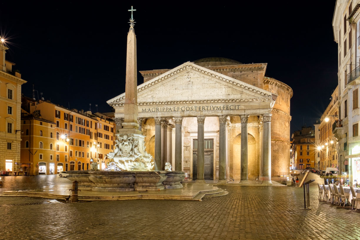 The Pantheon, nestled in the historic district, beckoned with its iconic dome, inviting us to uncover the secrets within its ancient walls. Originally built as a temple to honor all Roman gods, the Pantheon stands as a testament to Roman engineering prowess. Its massive dome, with an oculus at its center, provides an architectural marvel, allowing natural light to filter into the grand rotunda. As we stepped inside, we were greeted by the breathtaking sight of the world’s largest unreinforced concrete dome. Of course, the pantheon also makes an impressive sight at night with its mystical atmosphere, creating a connection to centuries of awe-inspiring history.