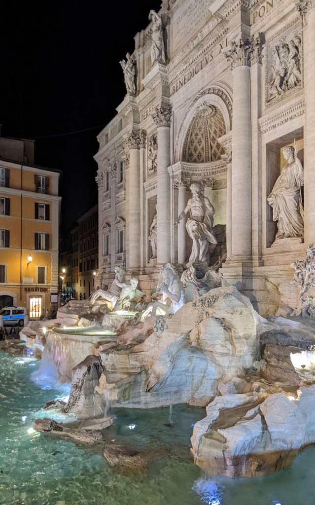 And finally, the Colosseum, Rome’s unrivaled symbol of grandeur, revealed its enchanting aura under the cloak of darkness. This iconic amphitheater, constructed in AD 80, once hosted gladiatorial contests and public spectacles. The Colosseum’s colossal structure, adorned with Doric, Ionic, and Corinthian columns, is a testament to Roman engineering excellence. By visiting at night, we were treated to a sublime spectacle, free from the bustling daytime crowds. The illuminated Colosseum allowed us to appreciate its grandeur in tranquility, conjuring a sense of awe and reverence for the ancient events that unfolded within its historic walls. In the quietude of the night, the Colosseum’s powerful presence resonated with the echoes of a bygone era.