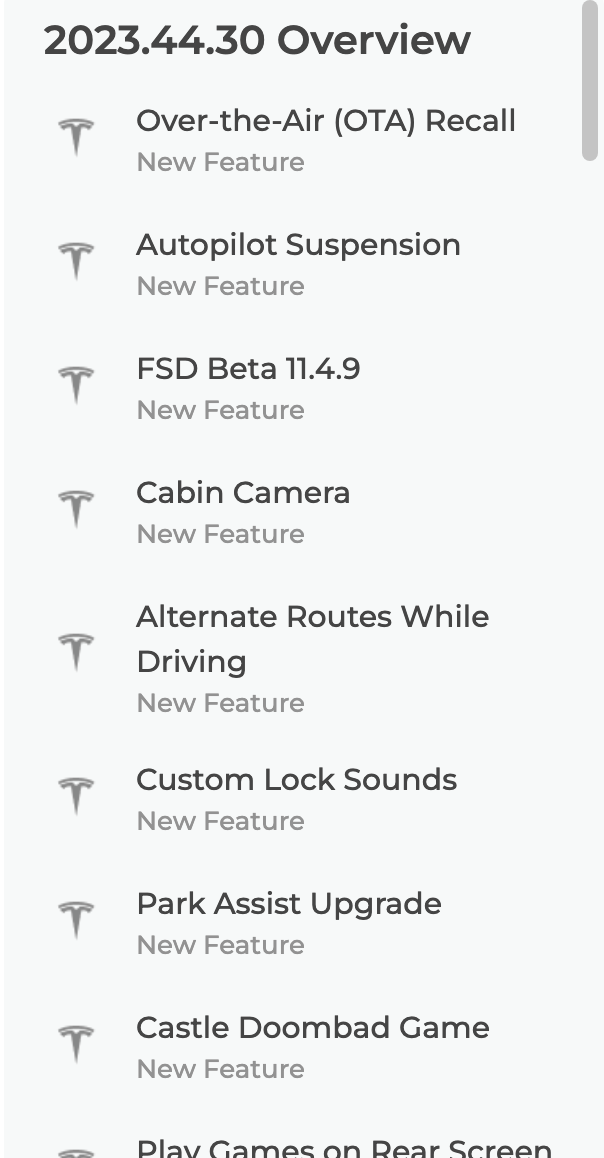 You can find a good idea of a Tesla update on the following site: https://www.notateslaapp.com/software-updates/version/2023.44.30/release-notes