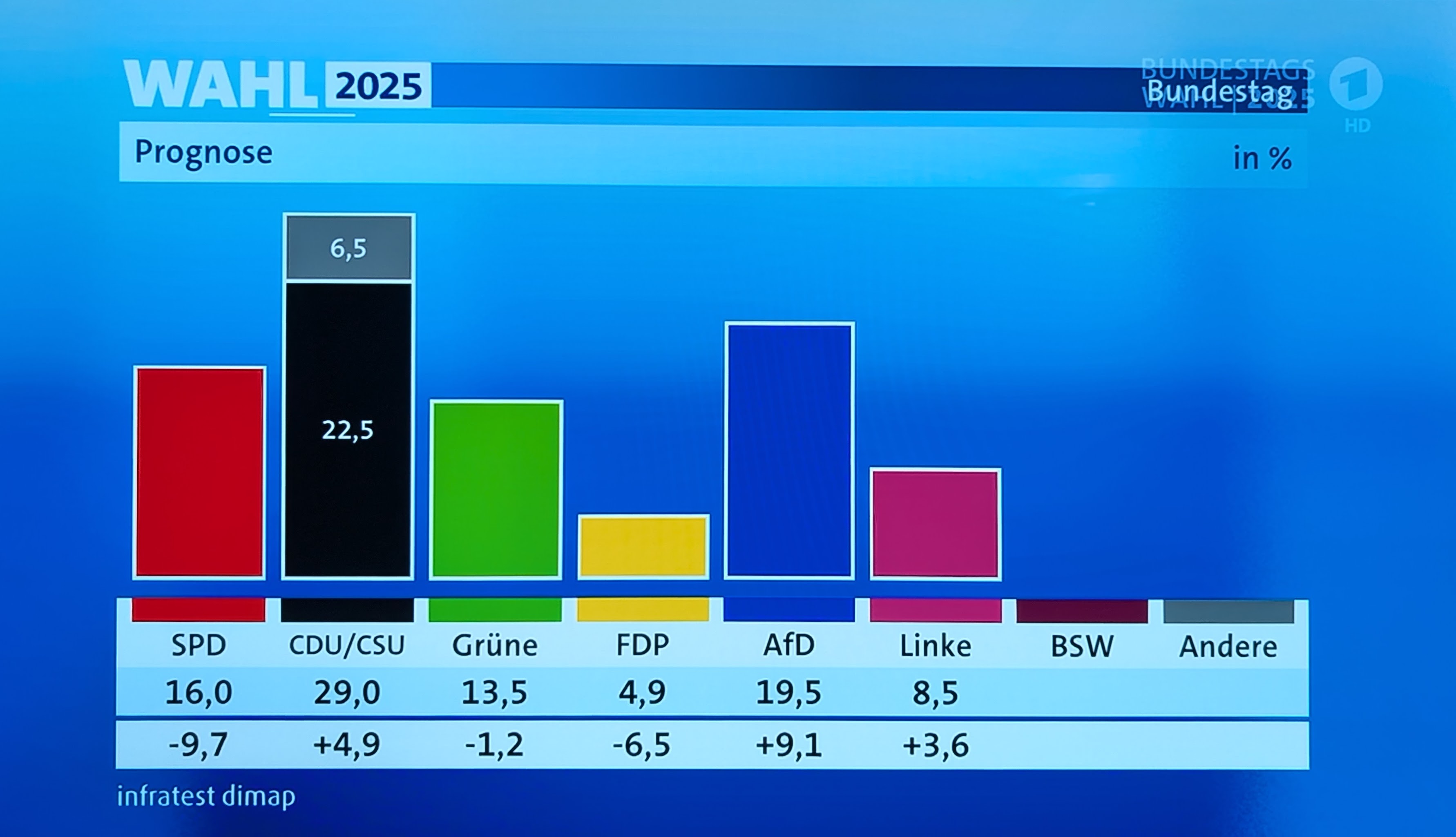 I don’t believe the CDU will take that risk. That’s why I expect a coalition with the SPD. Not an ideal solution for Germany, as it will only further strengthen the AfD. In order to remain politically viable in the long term, the CDU must urgently regain its traditional bourgeois issues credibly. This must not only be about weakening the AfD, but rather about making its own, convincing substantive offers. Only if the CDU is once again perceived as a credible representation of bourgeois interests can it prevent its voters from continuing to migrate to more radical parties.